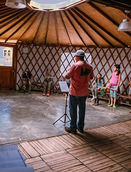 (pentatónica hasta 2° de Primaria, diatónica a partir de 3°): flautas diatónica, barroca y alta, guitarra, percusiones, conjuntos corales y conjuntos orquestales, lectura y notación musical, teoría básica de la música
